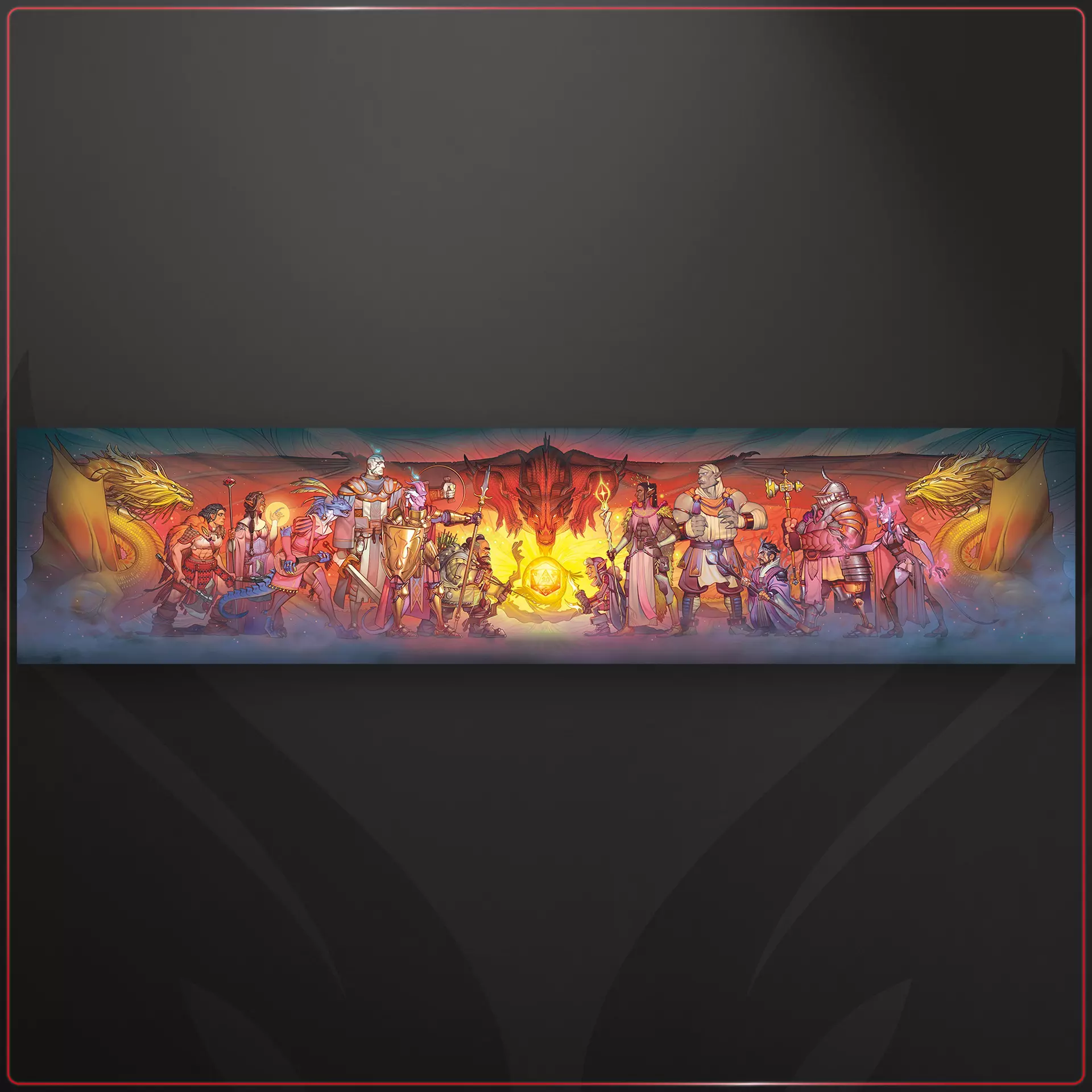 Дизајн: Четири-панелен екран со панорамска илустрација од Joy Ang, прикажувајќи ги сите основни класи од петтата едиција на Dungeons & Dragons.