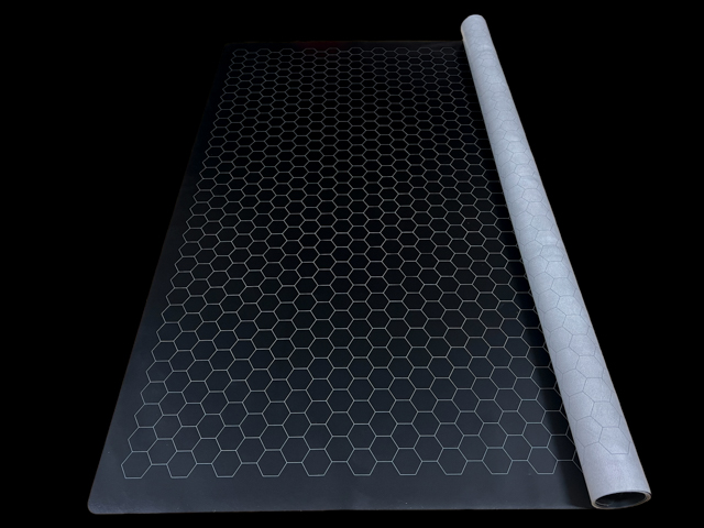 Оваа двострана мапа, со хексагонални полиња од 2,5cm, нуди црна и сива страна, овозможувајќи флексибилност во визуелниот приказ на авантуриte. Изработена од издржлив винил, мапата е идеална за долготрајна употреба и лесно се чисти.