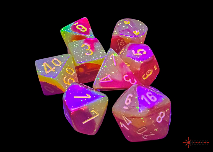 Сет од 8 коцки: D4, D6, D8, D10, D12, D20, D% и бонус коцка